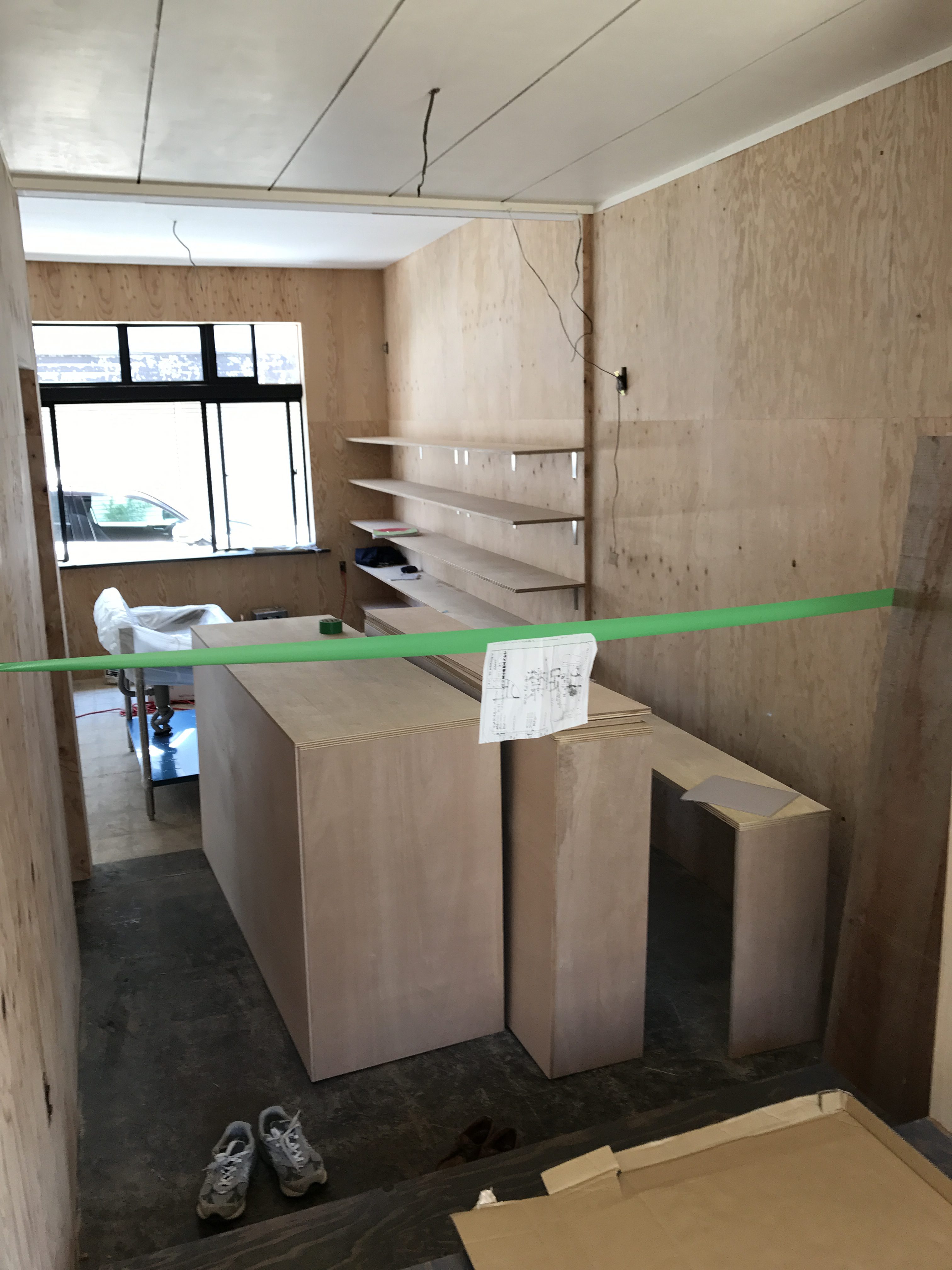 だいぶ変わったでしょ。業者さんの改装もラストスパートです。元の状態からはだいぶ進化したかなと思います。内装が進むにつれ頭にあったイメージが具現化されます。当初の予定よりもさらに良い空間にするためにアイデアも増えてきます。なのでまだオープンできそうにありません。これから自宅より長い時間過ごす店舗なので色々考えオープン日は決定します。