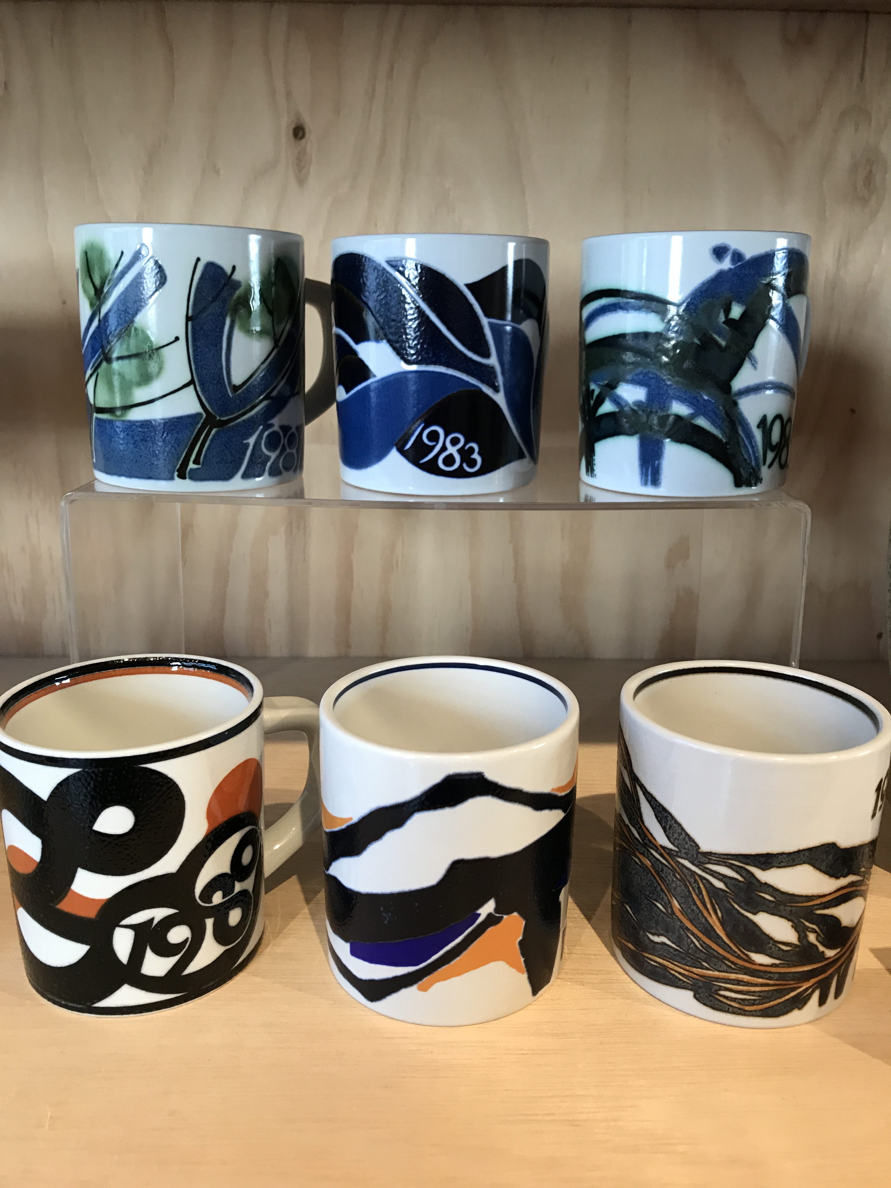 あとこんなハイセンスなイヤーマグもあります。イヤープレートは有名ですがマグもかわいいです。自店ではギフトで常に人気の為、かなり多くいれてますので、お気に入りの柄や年代がそろいますのでご相談くださいね。