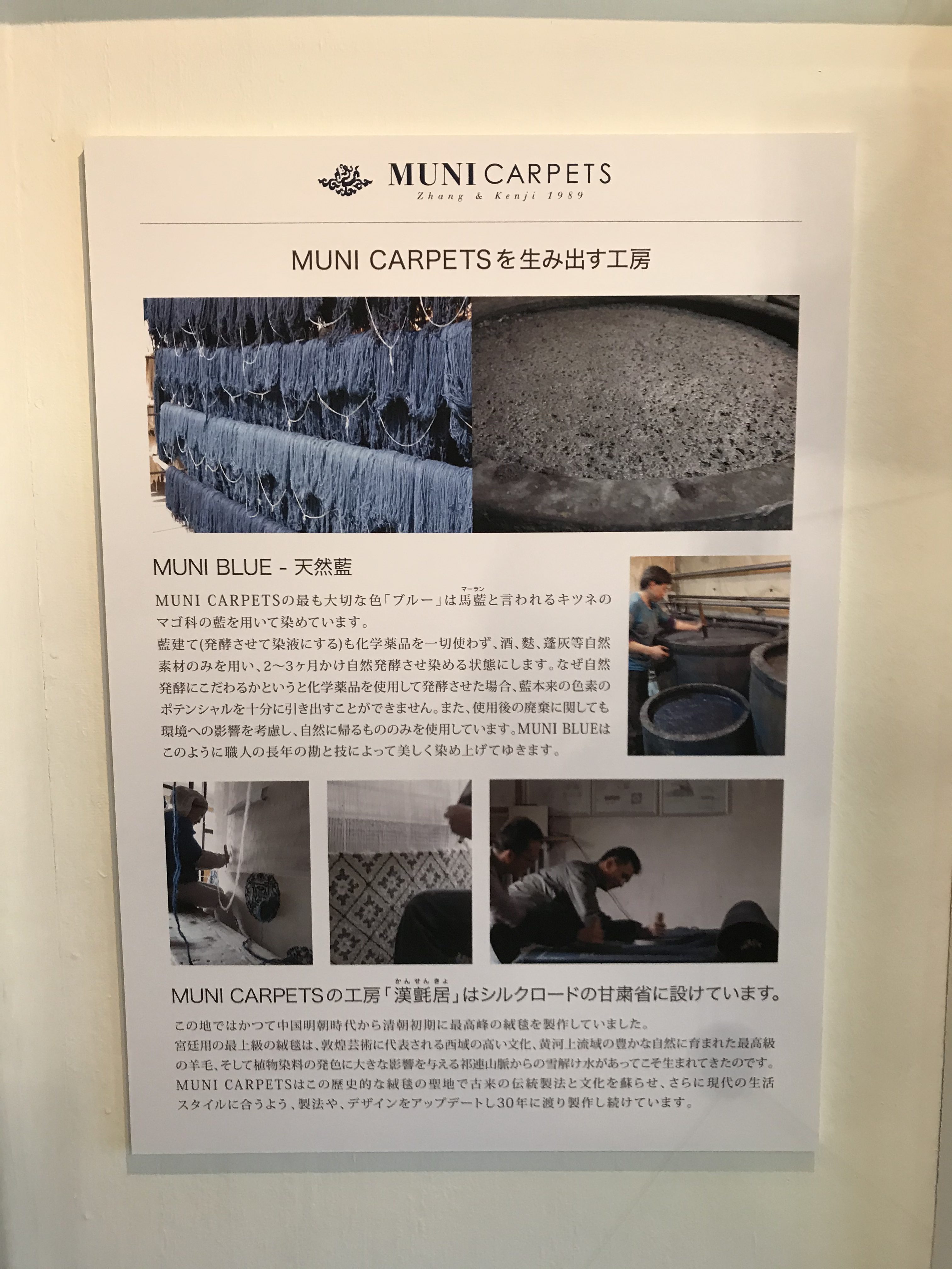 製造方法、ブランドヒストリーや全製品の資料なども用意していただいています。資料を見ていただいて大きなリビング敷などもお家までMUNIさんとフィッティングに伺うことも、距離次第では可能ですので、お気軽にお立ち寄りくださいませ。
